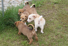 Pieski są bardzo energiczne, świetnie kontaktują się z człowiekiem. Początki były trudne, ponieważ znaleźliśmy je w norze, którą wykopała ich matka. Przez pierwsze tygodnie pracowaliśmy nad tym żeby je oswoić, ale teraz już super się bawią i są gotowe na to żeby ktoś je pokochał