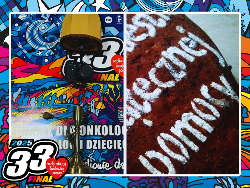 Lampa z aparatu w stylu retro oraz Chleb na zamówienie – wyjątkowy wypiek w kształcie sercasprzedane Cena ostateczna: 500 zł Unikatowa lampa wykonana z aparatu fotograficznego, utrzymana w stylu retro. To oryginalny element dekoracyjny, który doskonale łączy funkcjonalność z sentymentalnym urokiem dawnych czasów. Styl vintage i niepowtarzalny design sprawiają, że lampa przyciąga uwagę i dodaje charakteru każdemu wnętrzu. Ten ręcznie wykonany przedmiot to idealny wybór dla osób poszukujących niebanalnych i artystycznych dodatków do wystroju. Wyjątkowy chleb o wadze około 1,7 kg, wykonany na zamówienie według preferencji licytującego. Chleb może być ozdobiony orkiestrowym napisem, sercem lub przystrojeniem okolicznościowym – idealny na ślub, komunię, urodziny lub inne wyjątkowe okazje. To chleb żytni z dodatkiem orkiszu, wypiekany na naturalnym zakwasie, bez drożdży, z mąki pochodzącej z serca Puszczy Knyszyńskiej. Wykonany według starej receptury z 1911 roku, gwarantuje doskonały smak i najwyższą jakość. Dodatek słonecznika oraz węgla aktywnego nadaje mu wyjątkowego charakteru. Chleb nie będzie gotowy do odbioru w dniu finału – kontakt do osoby wypiekającej zostanie przekazany po licytacji, aby ustalić szczegóły przystrojenia i dokładny termin realizacji. Voucher na odbiór chleba ważny jest do końca roku. Przekazuje:Twórca Ludowy z Kłocka / Jacek |