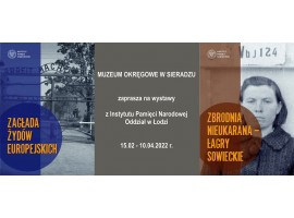 Od wtorku 15 lutego w Muzeum Okręgowym w Sieradzu będzie można oglądać dwie wystawy przygotowane przez Oddziałowe Biuro Edukacji Narodowej IPN w Łodzi. Ekspozycje "Zagłada Żydów europejskich" i "Zbrodnia nieukarana – łagry sowieckie" będą prezentowane do 10 kwietnia.