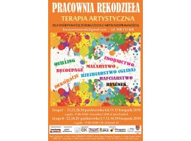 Grupa TERAPIAart oraz Stowarzyszenie Kreatywny Sieradz zapraszają na warsztaty artystyczne, które są przeznaczone dla osób powyżej 25 roku życia z niepełnosprawnością, posiadających orzeczenie o niepełnosprawności ze wskazaniem do uczestnictwa w terapii zajęciowej, którzy w takich warsztatach uczestniczyli lub chcieli uczestniczyć ale zostali z nich wykluczeni.
