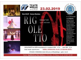 Spółdzielczy Dom Kultury w Sieradzu zaprasza 23 lutego na wycieczkę do Teatru Wielkiego w Łodzi, na słynną operę Rigoletto. W roli Gildy pochodząca z Warty- Hanna Okońska.