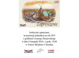 Jutro w Teatrze Miejskim w Sieradzu odbędzie się promocja wyjątkowego kalendarza na 2019 rok. Znajdziecie w nim grafiki, na których widnieją obiekty będące częścią Sieradza. Ich autorem jest malarz Cezary Zbrojewski.