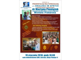 Spółdzielczy Dom Kultury w Sieradzu zaprasza 19 stycznia na prezentację multimedialną" Okuliści w Afryce", którą przygotowała i poprowadzi dr Martyna Pieniążek. Towarzyszyć jej będzie Michał Prokurat.