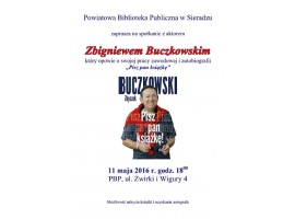 Spełniony aktor, mąż, ojciec i dziadek, nagrał płytę i napisał książkę. Znany z wielu filmów i seriali, sławę przyniosła mu, napisana specjalnie dla niego, rola Henia Lermaszewskiego w serialu Dom. Zbigniew Buczkowski odwiedził dzisiaj Powiatową Bibliotekę Publiczną w Sieradzu.