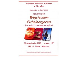 Tak zatytułowane jest spotkanie, które odbędzie się piątek (23 października) w Powiatowej Bibliotece Publicznej w Sieradzu. Jego bohaterem będzie wybitny psycholog, psychoterapeuta i trener - Wojciech Eichelberger.