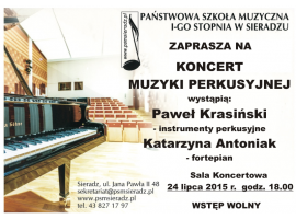 Instrumenty perkusyjne solo oraz w towarzystwie fortepianu - taki koncert na ten piątek (24 lipca) przygotowała Państwowa Szkoła Muzyczna I stopnia w Sieradzu. Za instrumentami perkusyjnymi takimi jak kotły, werbel czy wibrafon wystąpi Paweł Krasiński, a przy fortepianie Katarzyna Antoniak.
