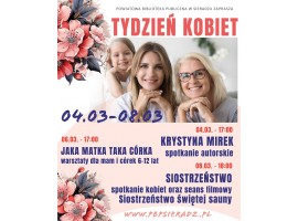 W piątek Dzień Kobiet i z tej okazji biblioteka powiatowa w Sieradzu przygotowała sporo atrakcji. Na dziś bibliotekarze zaplanowali spotkanie autorskie z Krystyną Mirek, odbędą się też warsztaty i seans filmowy.