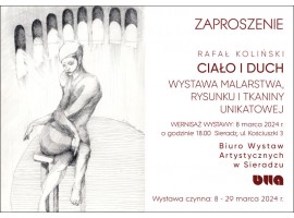 Ekspozycja jest zatytułowana "Ciało i duch". Jej otwarcie zaplanowano na jutro na godz. 18;00. Zobaczymy na niej obrazy, rysunki i tkaniny stworzone przez artystę pochodzącego z Sieradza. - Kolekcja, którą prezentuję podczas sieradzkiej wystawy obejmuje dzieła z lat 2007-2024, a jej oś stanowią rysunki powstałe pod silnym wrażeniem wydarzeń politycznych i społecznych ostatnich lat, które mają zarazem bardzo intymny, osobisty charakter - zapowiada artysta.