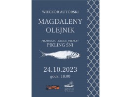 We wtorek 24 października o godz. 18:00 Powiatowa Biblioteka Publiczna w Sieradzu i Stowarzyszenie Kreatywny Sieradz zapraszają na promocję tomiku wierszy Magdaleny Olejnik "Pikling śni".