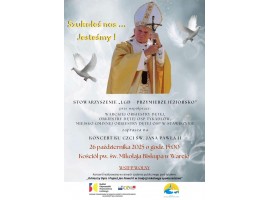 Stowarzyszenie "LGD - Przymierze Jeziorsko" zaprasza w najbliższą niedzielę na koncert "Ku czci św. Jana Pawła II". Koncert odbędzie się w Kościele pw. św. Mikołaja Biskupa w Warcie o godzinie 15.