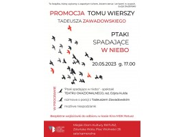W najbliższą sobotę, 20 maja, w Zduńskowolskim Centrum Integracji Ratusz odbędzie się promocja najnowszej książki Tadeusza Zawadowskiego pt. "Ptaki spadające w niebo".