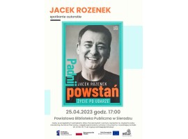 Bibliotekę powiatową w Sieradzu odwiedzi dziś kolejny wyjątkowy gość. Tym razem książnica zaprasza na spotkanie z Jackiem Rozenkiem, aktorem, lektorem, mówcą i trenerem. Człowiekiem, który spotkał na swojej drodze zwalającą z nóg chorobę. Swoją historię opowiedział w książce "Padnij. Powstań. Życie po udarze".