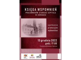 Powiatowa Biblioteka Publiczna w Sieradzu i Fundacja Działań Kreatywnych zapraszają w czwartek o godz. 17:00 na promocję wydawnictwa "Księga wspomnień pracowników starego szpitala".