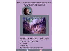 Pierwszy po wakacjach wernisaż wystawy malarstwa. Tym razem to sztuka Ewy Wiśniewskiej-Klimczak. Wystawę będzie można podziwiać do 4 października.