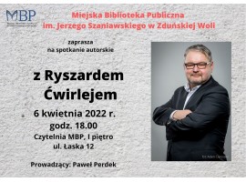 Miejska Biblioteka Publiczna im. Jerzego Szaniawskiego w Zduńskiej Woli zaprasza jutro, 6 kwietnia, na spotkanie z Ryszardem Ćwirlejem - dziennikarzem telewizyjnym, pisarzem i wykładowcą, autorem bestsellerowych powieści kryminalnych w stylu retro. W swoich powieściach przenosi czytelników w czasy przedwojenne oraz do Poznania lat osiemdziesiątych.