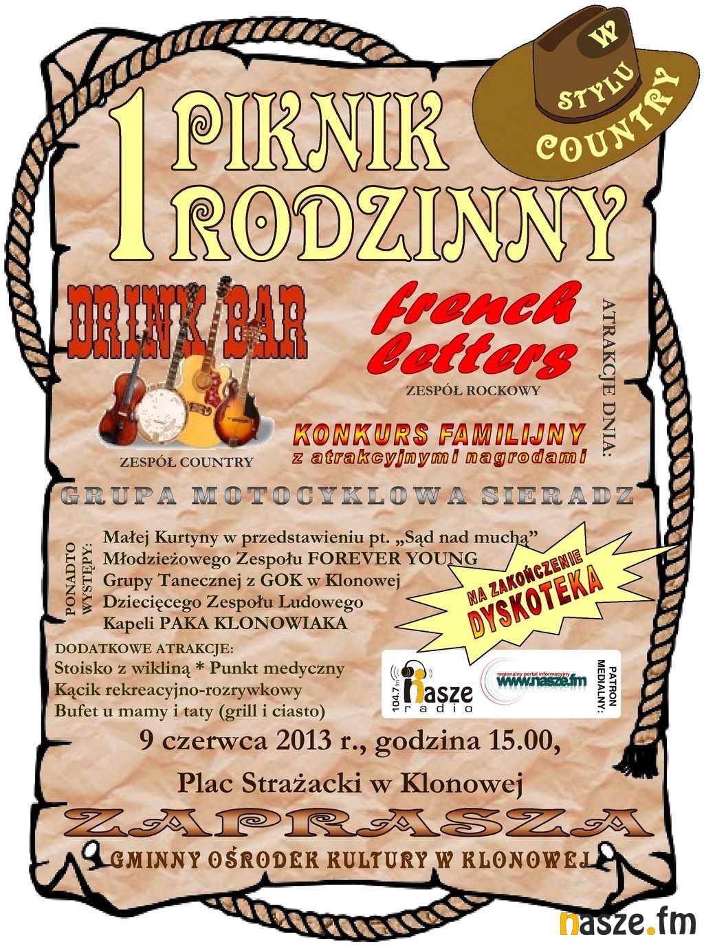 Sezon na imprezy plenerowe rozpoczął się na dobre. 1 Piknik Rodzinny w stylu country odbędzie się w najbliższą niedzielę w Klonowej.