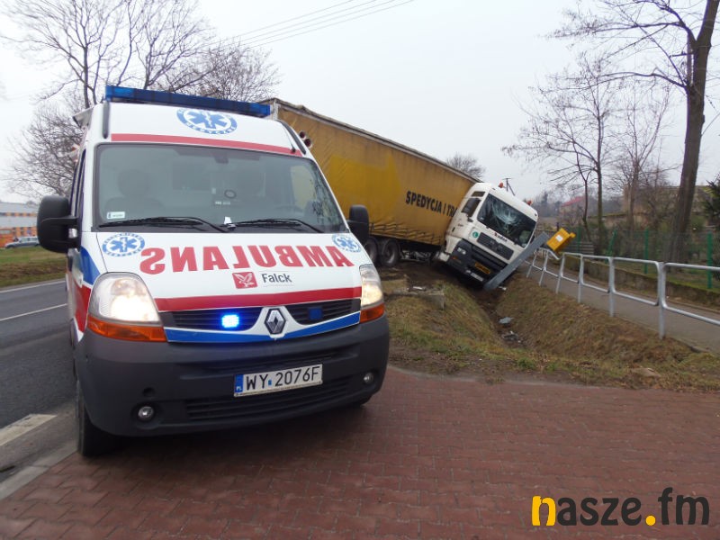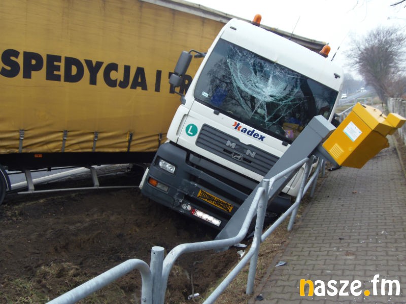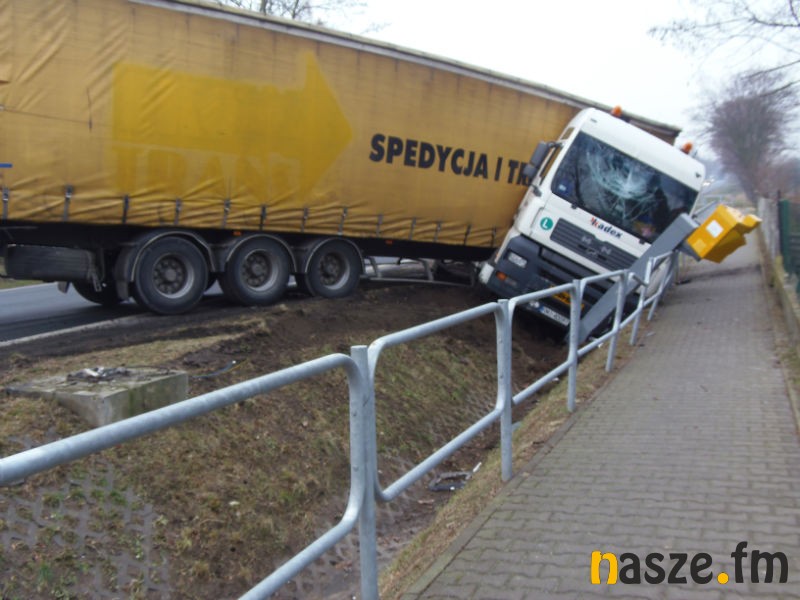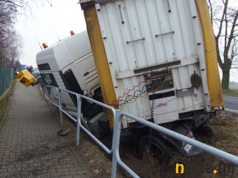 Tir zniszczył również stojący przy drodze fotoradar. W wyniku zdarzenia lekkich obrażeń doznał kierowca ciężarówki, jego życiu nie zagraża niebezpieczeństwo, jest tylko poobijany. Mężczyzna był trzeźwy.