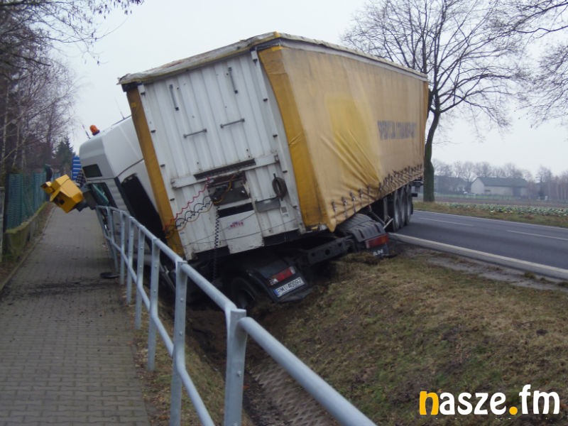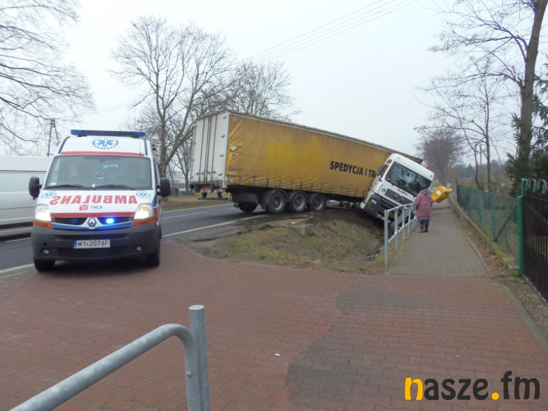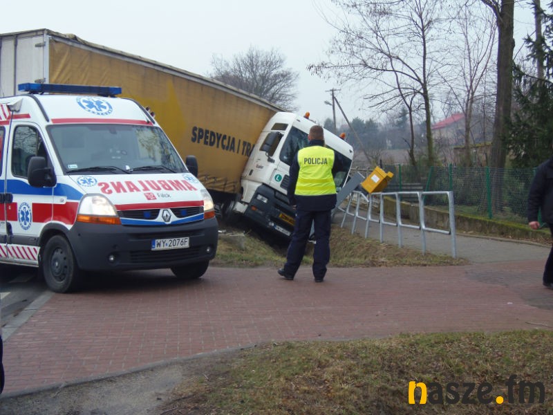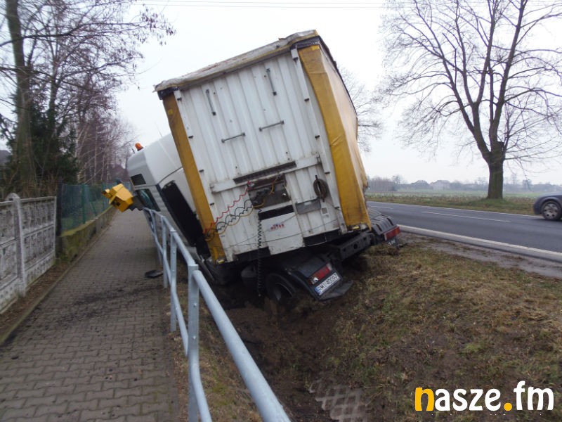 Wypadek w Słomkowie Mokrym na drodze krajowej nr 12. Tir wpadł tam do rowu niszcząc przy okazji fotoradar.