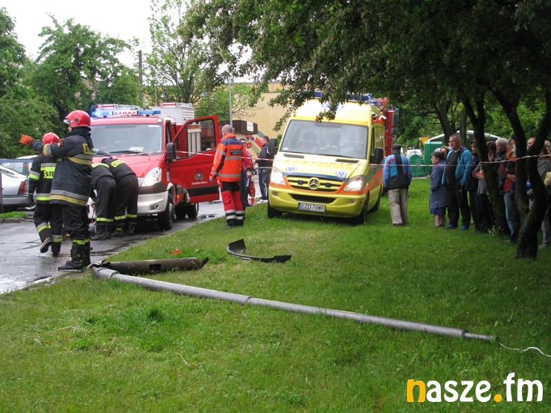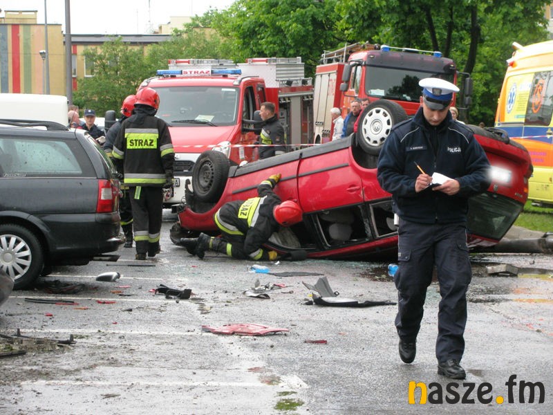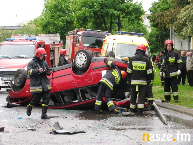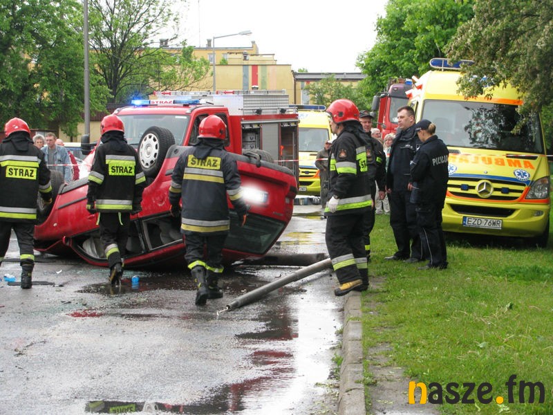 Patrol policji zauważył dziwnie jadącego volkswagena passata, który wyprzedzał "na trzeciego" i jechał wężykiem najpierw ulicą Sieradzką, a później Łódzką. Funkcjonariusze postanowili zatrzymać samochód do kontroli drogowej. Kierowca nie reagował jednak na sygnały dźwiękowe i zaczął uciekać. Policjanci ruszyli za nim w pościg. Uciekający volkswagen wjechał w osiedlową uliczkę. Podczas ucieczki "skosił" latarnię i uderzył w stojącego na parkingu rovera, a następnie odbił się od niego i dachował. Zderzenie pojazdów było tak silne, że przy okazji uszkodzone zostały 4 inne stojące na parkingu auta.