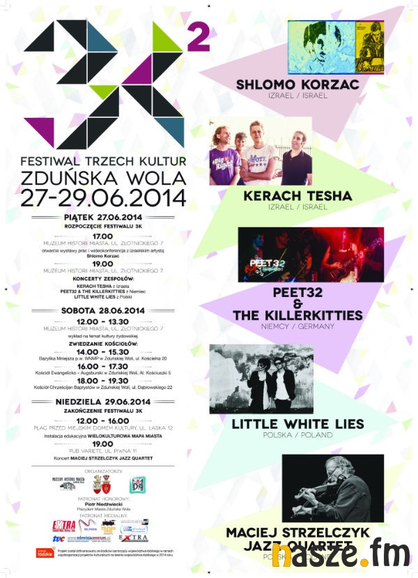 W weekend w Zduńskiej Woli odbędzie się już druga edycja Festiwalu Trzech Kultur 3K. Tym razem wystąpią zespoły z Izraela -Kerach Tesha, Niemiec - Peet32 & The Killerkitties oraz z Polski - Little White Lies. Zaplanowana jest również wystawa prac i wideokonferencja z izraelskim artystą - Shlomo Korzaciem. Te atrakcje zaplanowano na piątek czyli pierwszy dzień wielokulturowego festiwalu.