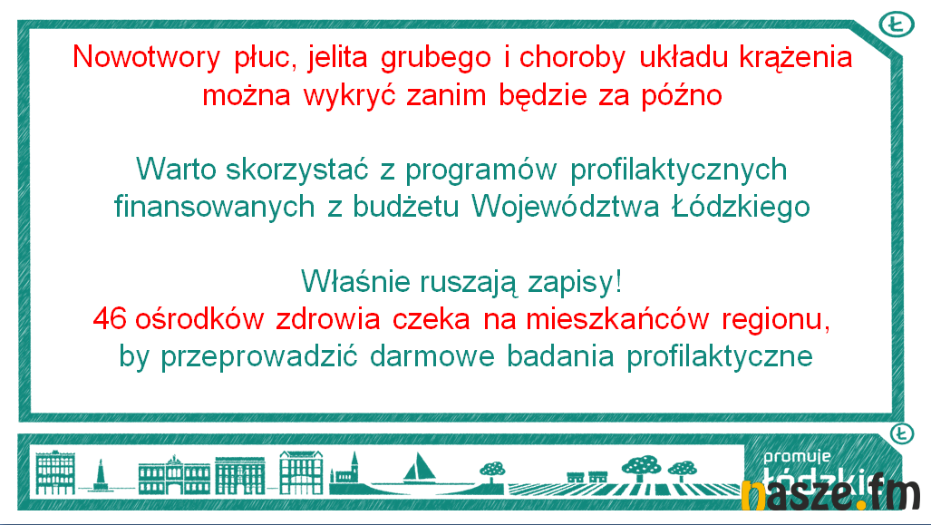 Rejestracja telefoniczna pod numerem telefonu 43 827 10 21. Dzwonić można od poniedziałku do piątku, w godzinach 8-15. Program prowadzi Poradnia Gruźlicy i Chorób Płuc z pracownią badań czynnościowych układu oddechowego, przy ul. Nenckiego 2. - Wczesne wykrywanie nowotworów jelita grubego. Program jest skierowany do osób w wieku 50-65 lat, które nie posiadają objawów tego nowotworu oraz do osób w wieku 40-65 lat bez objawów, które miały w rodzinie przynajmniej jednego krewnego (rodzice, dzieci, rodzeństwo), u którego zdiagnozowano ten typ raka. Niestety do badań nie zakwalifikują się osoby, które w ciągu 10 lat miały wykonywane badanie kolonoskopowe i te, które wcześniej leczyły się z powodu nowotwory jelita grubego. Pacjentom przysługiwać będą dwie konsultacje lekarskie i bezpłatne badania diagnostyczne (badanie na krew utajoną, badanie kolonoskopowe i badanie per rectum). Rejestracja telefoniczna pod numerem 43 827 82 41. Dzwonić można od poniedziałku do piątku, w godzinach 8-13. Badania poprowadzi Poradnia Gastroenterologiczna przy Armii Krajowej.
