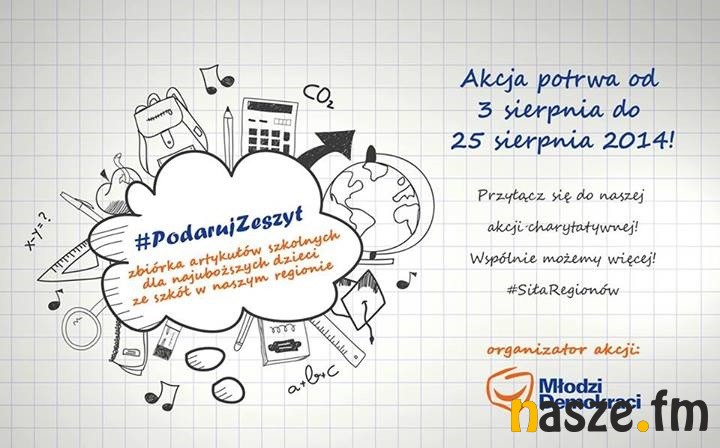Własnie ruszyła ogólnopolska akcja "Podaruj zeszyt" zorganizowana przez Młodych Demokratów. Również w naszym regionie można zapewnić wyprawkę szkolną dla dzieci z najuboższych rodzin.