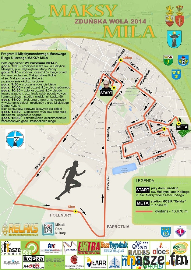 W najbliższą niedzielę w Zduńskiej Woli odbędzie się II Międzynarodowy Masowy Bieg Uliczny MAKSY MILA. Impreza organizowana jest na cześć patrona miasta św. Maksymiliana Kolbe. Trwają zapisy.