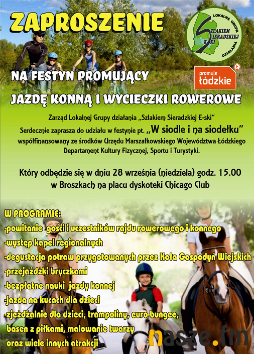 ... impreza pod takim właśnie hasłem odbędzie się w najbliższą niedzielę w Broszkach koło Złoczewa. Wcześniej przez najbardziej urokliwe zakątki kilku gmin przejadą konno i na rowerach uczestnicy dwóch rajdów, których meta będzie właśnie w Broszkach.