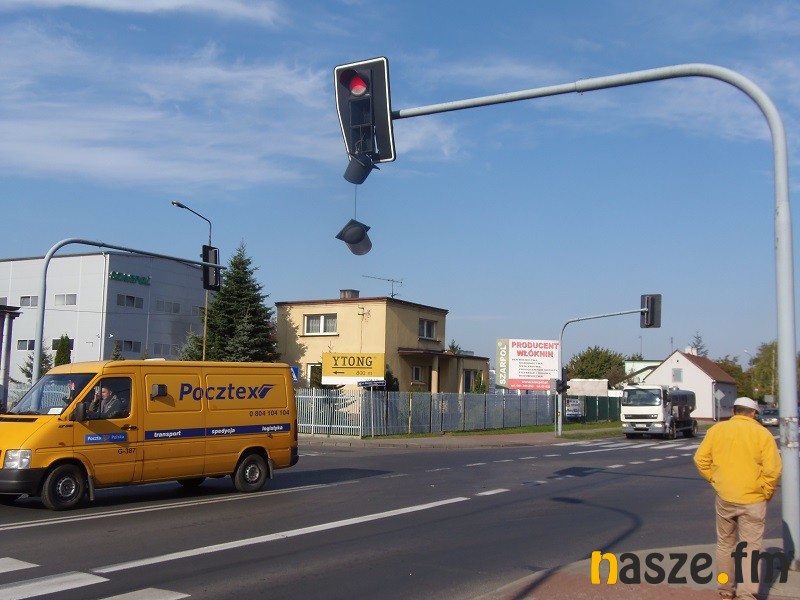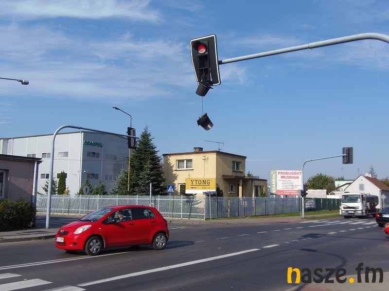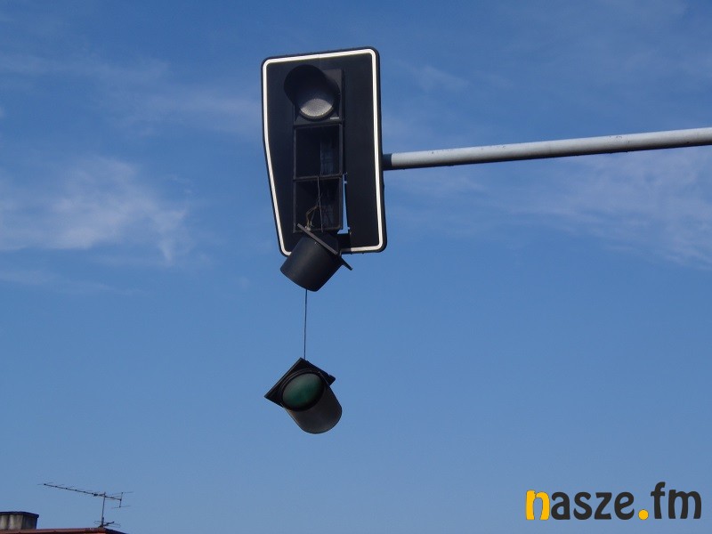 Kierowcy w Sieradzu musieli dziś uważać. Nad skrzyżowaniem ulic: Rapackiego, Wojska Polskiego oraz Mickiewicza wisiał zniszczony sygnalizator.