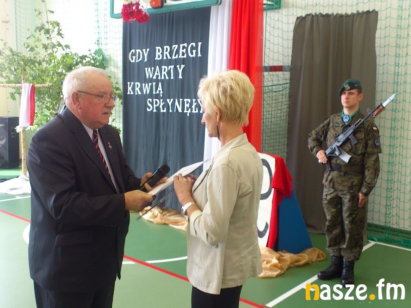 Kombatanci przekazali jednocześnie placówce materiały poświęcone służbie wojskowej uczestnika walk nad Wartą 39 r. porucznika Leona Bobińskiego. Weteran stulatek niestety nie mógł uczestniczyć w dzisiejszej uroczystości ze względu na stan zdrowia. W szkole w oparciu o przekazane dokumenty przygotowano jednak specjalną gazetkę.