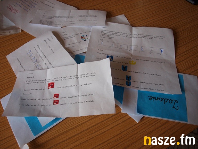 Po powrocie z terenu na uczestników gry czekały kolejne zadania. Musieli rozwiązać test i krzyżówkę, oczywiście związane z literaturą. Drużyna, która chciała wygrać musiała wykazać się ogromną wiedzą dotyczącą pisarzy, bohaterów literackich. Nie obca była im również znajomość wątków i akcji dzieł znanych polskich pisarzy. W imprezie udział wzięło 5 grup. Najlepsi okazali się uczniowie Publicznego Gimnazjum nr 2 -Martyna Kaspar i Jakub Niewiadomski. Zwycięscy otrzymali nagrody.