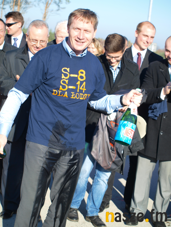 Uroczyste otwarcie "Ósemki" odbyło się na węźle Sieradz - Południe, gdzie po okolicznościowych przemówieniach przecięto wstęgę. Nieformalnie zgromadzeni uznali, że otwarcie nastąpiło wraz z niekontrolowanym spryskaniem drogi szampanem. Z tego powodu niekontrolowanym, ponieważ denko od butelki, którą trzymał prezydent Jacek Walczak... wyskoczyło pod wpływem ciśnienia.