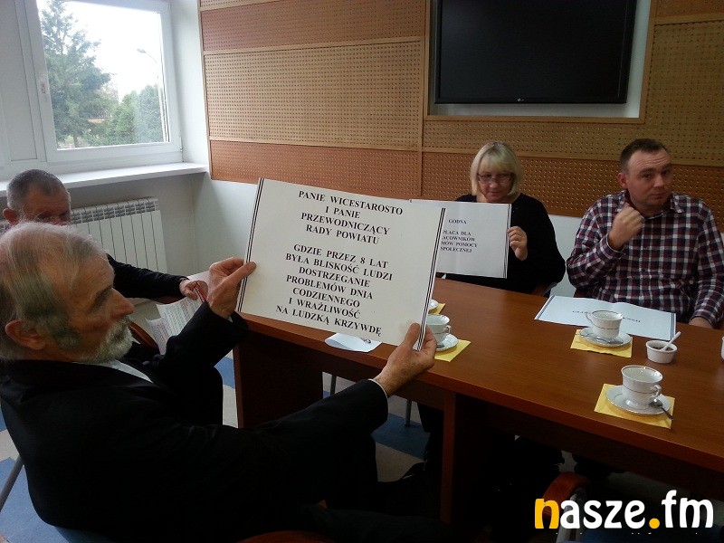 Już 16 listopada będziemy wybierać nowych radnych. Jak się okazuje jednak do ostatniego dnia przed wyborami, radni oraz zarząd powiatu muszą odpowiadać za to co się dzieje na terenie ich samorządu. Na ostatnie spotkanie rajców w tej kadencji przyszli bowiem pracownicy sieradzkiego Domu Pomocy Społecznej. Przynieśli oni ze sobą kartki z napisami: "Dość głodowych pensji", "Godna płaca dla pracowników domu pomocy społecznej", "Domagamy się spełnienia obietnic płacowych, nie dla dyskryminacji pod względem wynagradzania i awansu zawodowego" oraz "Panie wicestarosto i przewodniczący rady powiatu sieradzkiego, gdzie przez osiem lat była bliskość ludzi, dostrzeganie problemów dnia codziennego oraz wrażliwość na ludzką krzywdę".