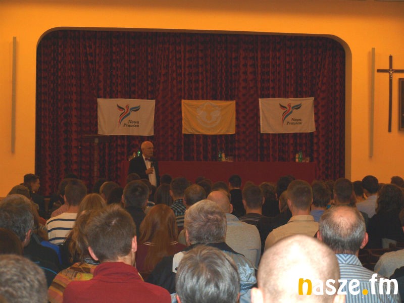 Prezes Kongresu Nowej Prawicy wczoraj spotkał się z mieszkańcami w ośrodku św. Maksymiliana. Sala była wypełniona po brzegi.