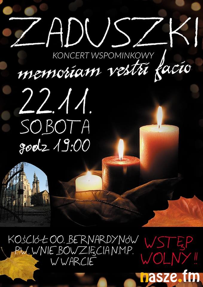 Jutro w kościele oo. Bernardynów wystąpi zespół CBA, który wyszedł z inicjatywą, żeby koncert zaduszkowy zorganizować. Muzycy chcą w ten sposób uczcić pamięć artystów, którzy już odeszli. Początek koncertu o godz.19:00, wstęp wolny.