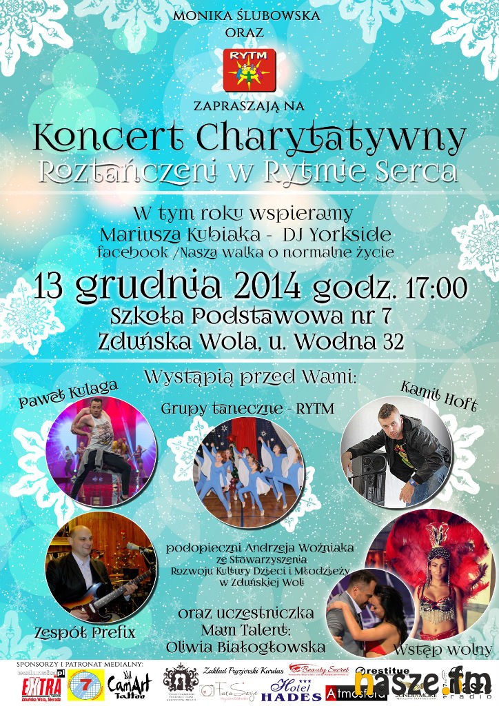 W koncercie charytatywnym wezmą udział dzieci z Centrum Rytmiki Ruchu i Rozwoju Dziecka RYTM Agnieszki Grzegorzewskiej, profesjonalni tancerze z Łodzi: Kamil Hoft i Paweł Kułaga oraz tancerka z Gdańska Oliwia Białogłowska. Ponadto zaśpiewają podopieczni Andrzeja Woźniaka. Koncert da również zespół Prefix. Początek imprezy godz 17.00.
