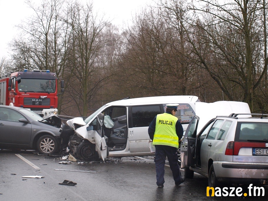 W wyniku wypadku ranni zostali kierowcy nissana i peugeota. Przewieziono ich do szpitala w Sieradzu. Jak wynika ze wstępnych ustaleń policji z nieznanych jeszcze przyczyn kierujący nissanem, jadąc w kierunku Zduńskiej Woli, nagle zjechał na przeciwległy pas ruchu. Potrącił renault, w którym uszkodził lewe lusterko, a następnie czołowo zderzył się z jadącym w kierunku centrum Sieradza peugeotem. Czwarty pojazd, który uczestniczył w zdarzeniu to jadący za peugeotem osobowy seat.