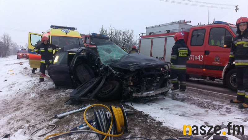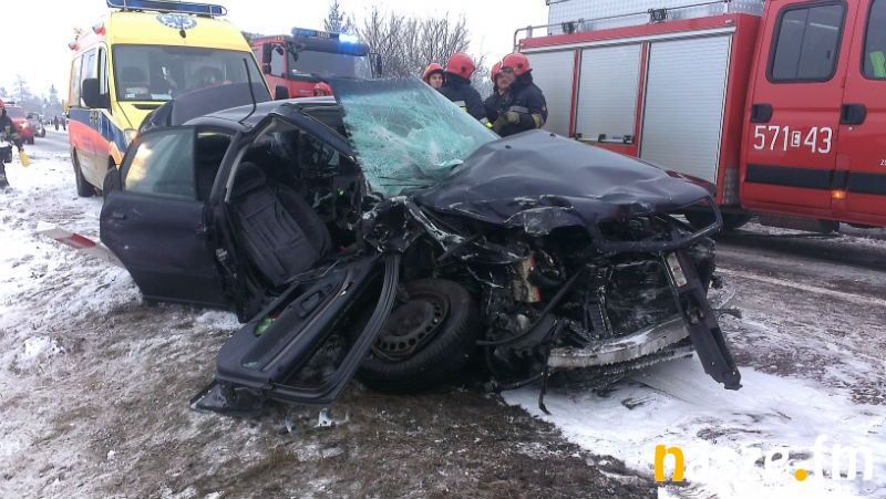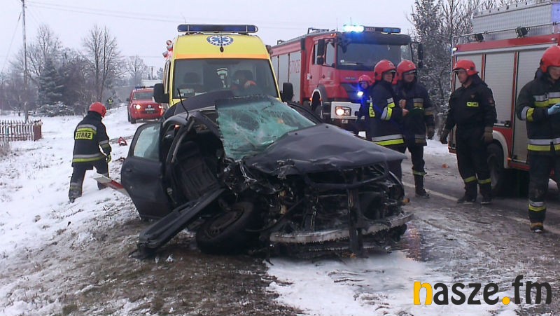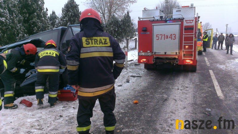 Ze wstępnych ustaleń wynika, że 40-letni mieszkaniec Łodzi kierujący audi A4 wpadł w poślizg, zjechał na przeciwległy pas ruchu i uderzył w jadącego z przeciwka forda transita. Uderzenie było na tyle silne, że oba samochody wpadły do przydrożnego rowu. W wyniku wypadku poszkodowane zostały 4 osoby. 3 z nich zostały odwiezione do szpitala w Zduńskiej Woli. To kierowca oraz dwie pasażerki audi. Kierujący pojazdami byli trzeźwi.