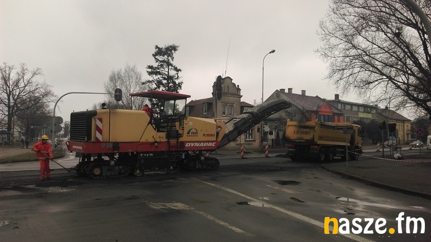 Tak jak informowaliśmy ekipa drogowców zaczęła od prac związanych z wymianą nawierzchni na połowie szerokości jezdni od strony południowej. W najlepsze trwa teraz operacja frezowania starego asfaltu. Wybierany jest też grunt pod nową podbudowę.