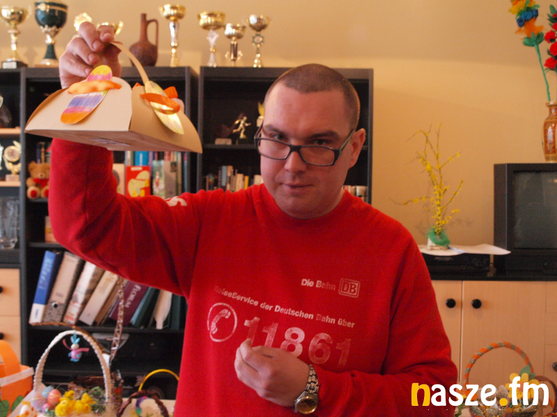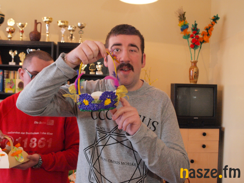 - Mój koszyk jest zrobiony z papieru i tu są jajeczka i wstążeczka, taka pomarańczowa - opisuje swój koszyk Marcin Raczek, podopieczny WTZ - Starałem się jak mogłem i musiałem to wykonać poprawnie.