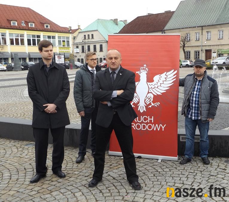 Kandydat na prezydenta RP z ramienia Ruchu Narodowego spotkał się z wyborcami, w samo południe, na sieradzkim rynku.