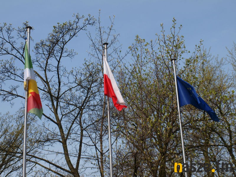 Uczniowie Publicznego Gimnazjum nr 1 w Zduńskiej Woli zaakcentowali dziś zbliżające się Święto Flagi Narodowej oraz 11. rocznicę wstąpienia Polski do Unii Europejskiej. Przed szkołą odbyła się krótka akademia.