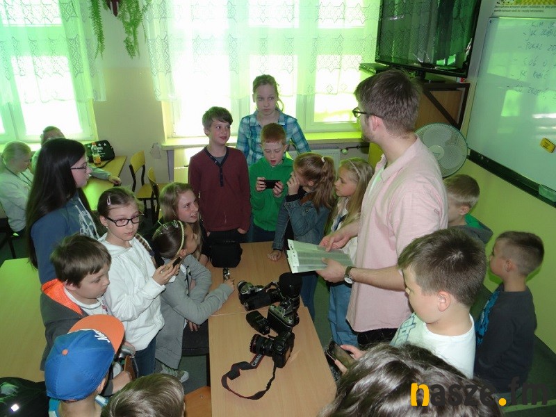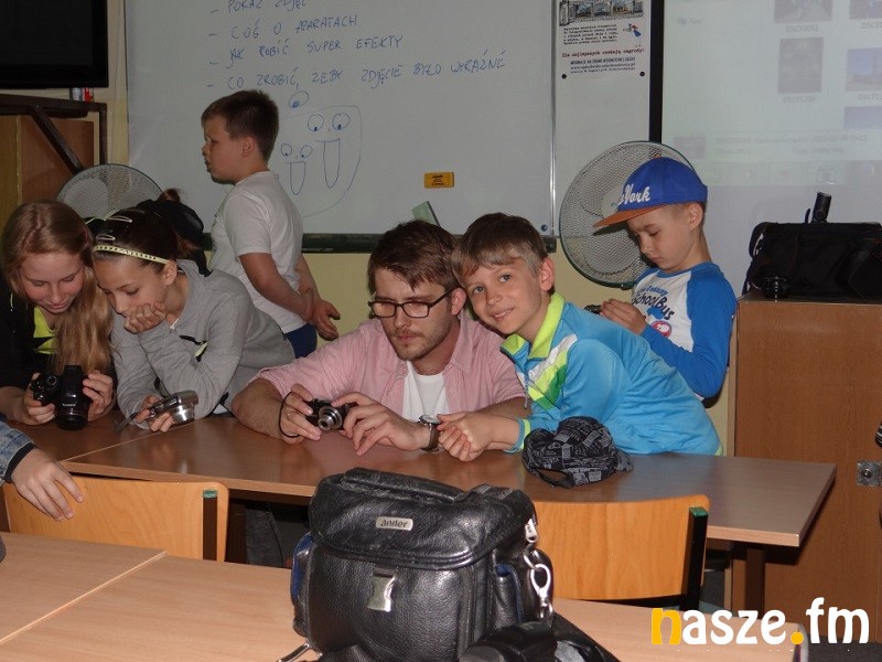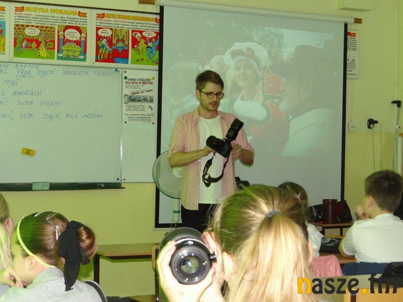 Było także kilka słów o obróbce zdjęć, światłocieniu, przesłonie i czasie naświetlania, fotografowaniu pod światło i z lampą błyskową. Uczniowie dostali do wykonania zadanie. Musieli na terenie szkoły w przeciągu 20 minut zrobić fotoreportaż na wymyślony przez siebie temat.