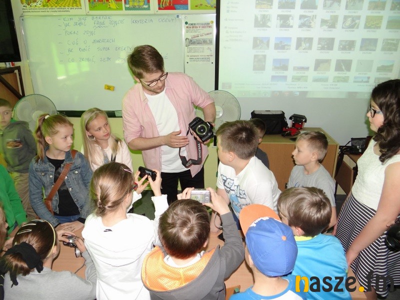 Najpierw uczniowie dowiedzieli się jak zrobić ciekawe zdjęcie, na co należy zwrócić uwagę przy naciskaniu spustu migawki i jakich błędów unikać. Zdaniem Bartka fajne zdjęcie można zrobić mając do dyspozycji nawet zwyczajny telefon, ale trzeba mieć pomysł, czasami wykazać się cierpliwością, a kiedy indziej refleksem. Niekiedy fotograf musi poczekać na dobre światło, wyszukać lepsze tło, usunąć z kadru zbędne elementy. Innym razem potrzebna jest natychmiastowa reakcja i błyskawiczne zrobienie fotki, żeby złapać niepowtarzalną chwilę.
