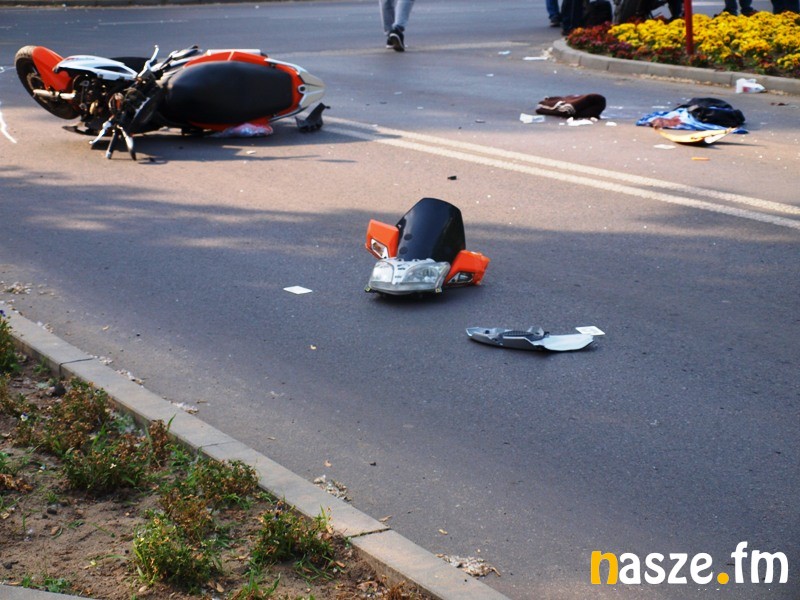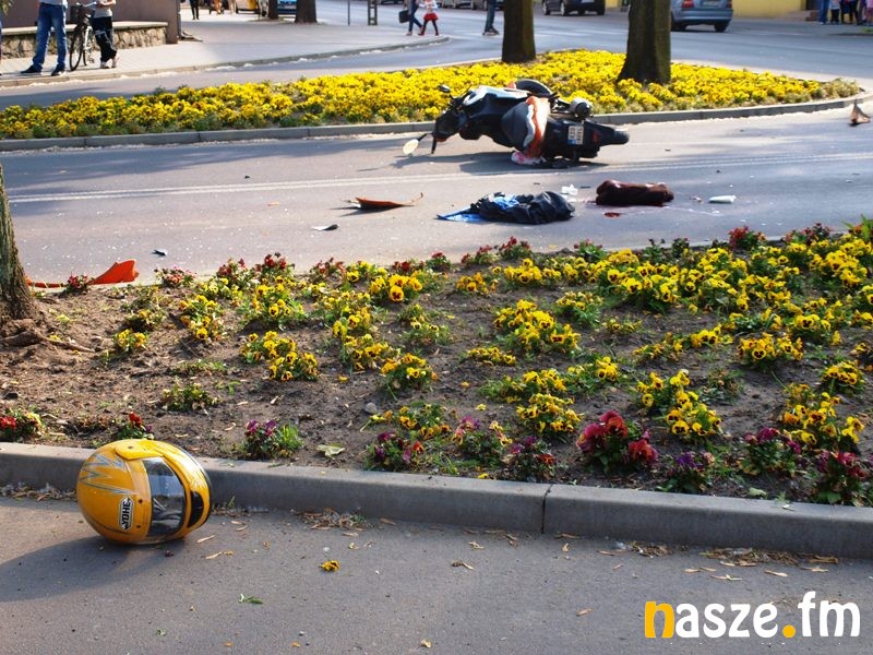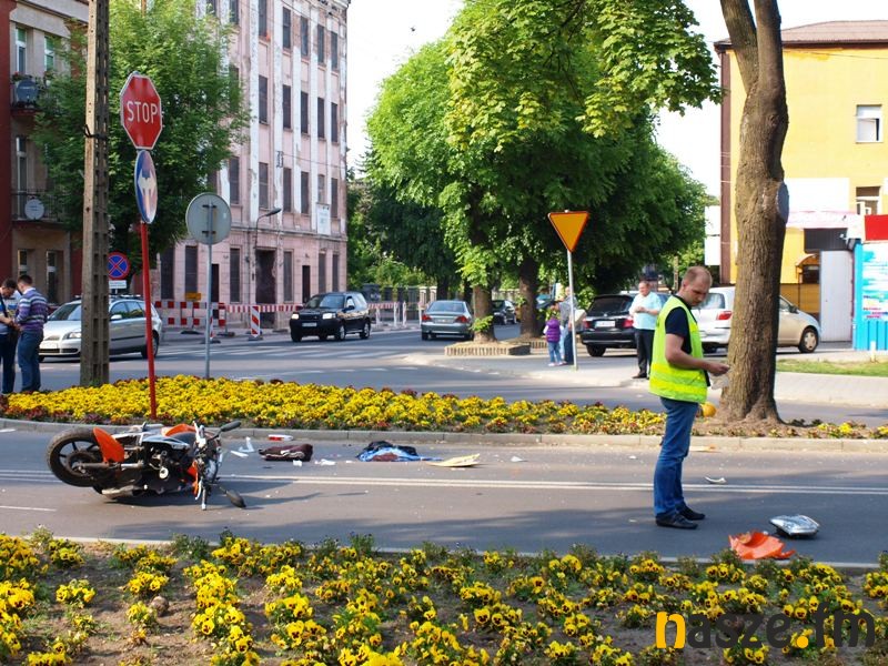 Na skrzyżowaniu ulic Żeromskiego i Dąbrowskiego doszło dziś do wypadku. Volkswagen golf zderzył się z motocyklistą. Kierowca samochodu nie posiadał prawa jazdy.