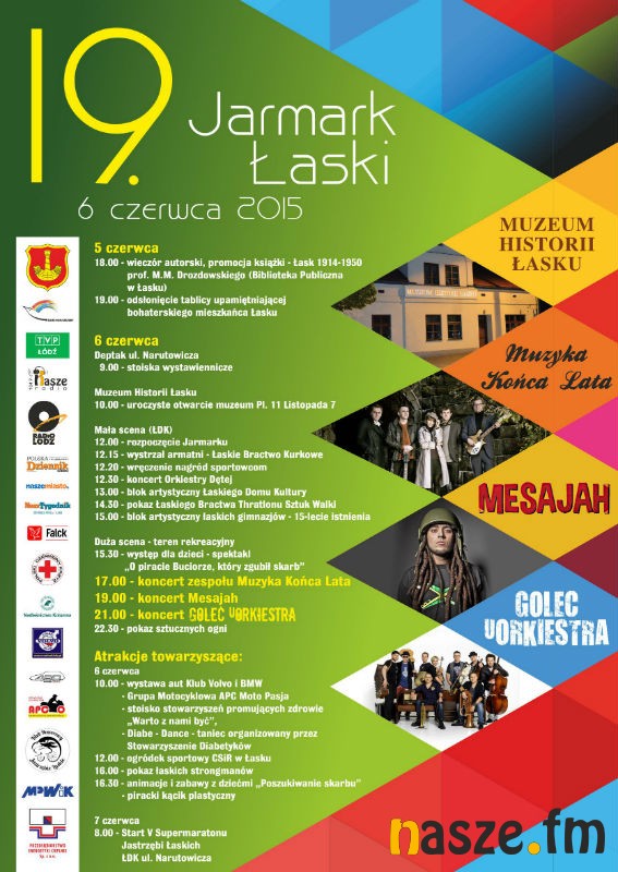 Ulica Narutowicza w Łasku od rana tętni życiem. Zmieniła się w kolorowy deptak wypełniony mnóstwem ciekawych stoisk. Gwiazdami tegorocznego jarmarku są zespoły: Golec uOrkiestra, Mesajah oraz Muzyka Końca Lata.