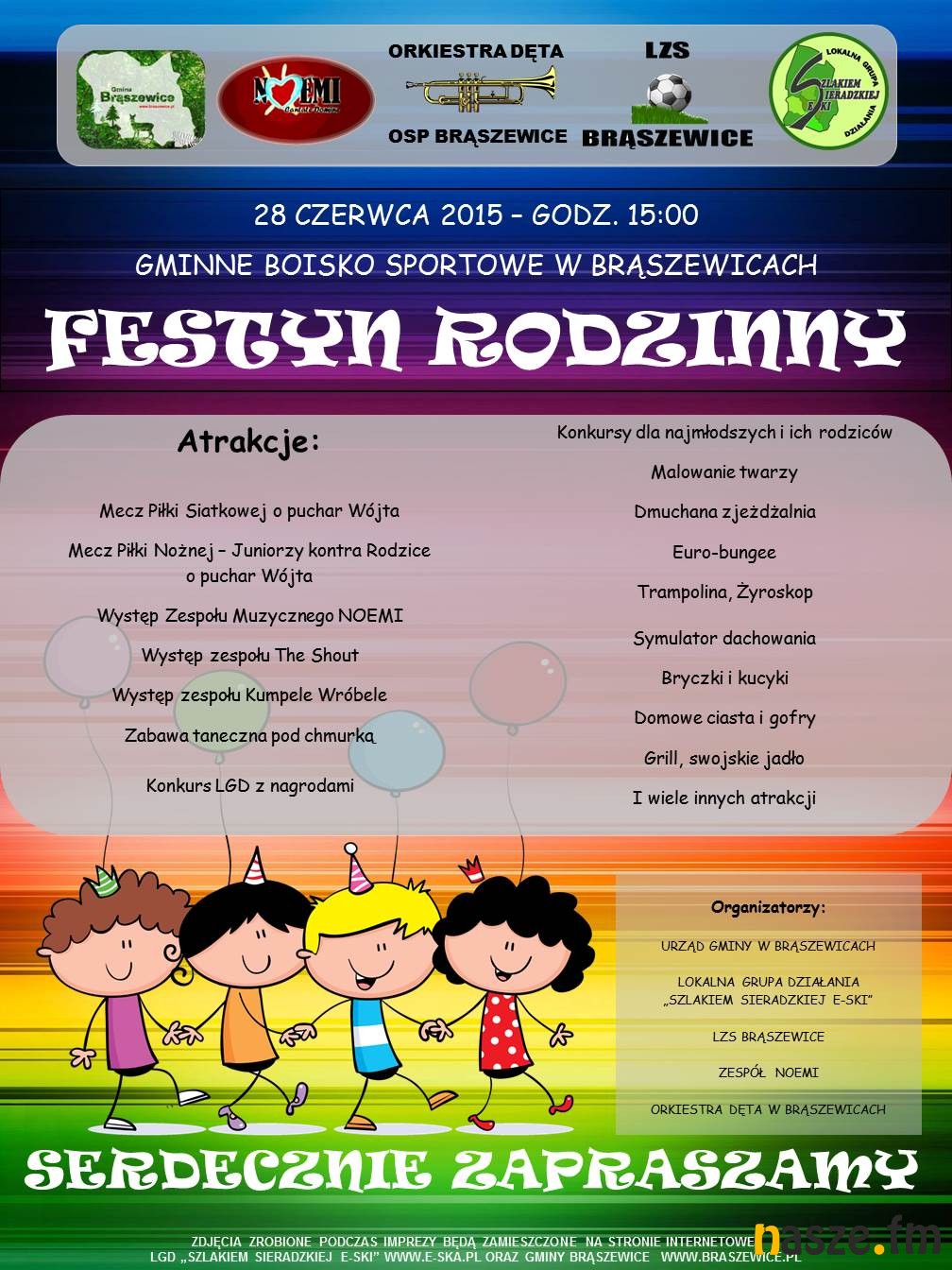 Jednym z takich wydarzeń będzie Gminny Festyn Rodzinny w Brąszewicach. Wśród atrakcji chociażby rozgrywki sportowe; będą mecze piłki nożnej oraz siatkówki o puchar wójta Brąszewic. Na scenie wystąpią min. kapela Kumpele Wróbele i zespół Noemi. Na koniec będzie zabawa taneczna pod gwiazdami. Festyn na boisku sportowym w Brąszewicach odbędzie się w najbliższą niedzielę (28.06.br), początek o godz. 15. Szczegóły na plakacie.