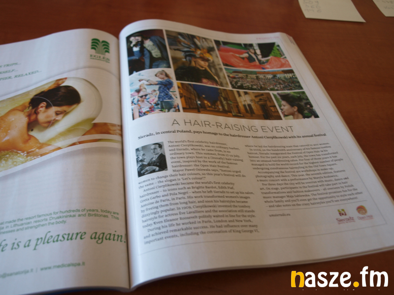 Sieradzki magistrat promuje miasto również pod chmurami. W gazetce pokładowej przewoźnika znajdziemy obszerny artykuł poświęcony naszemu miastu i przykuwające uwagę zdjęcia z Festiwalu Open Hair.
