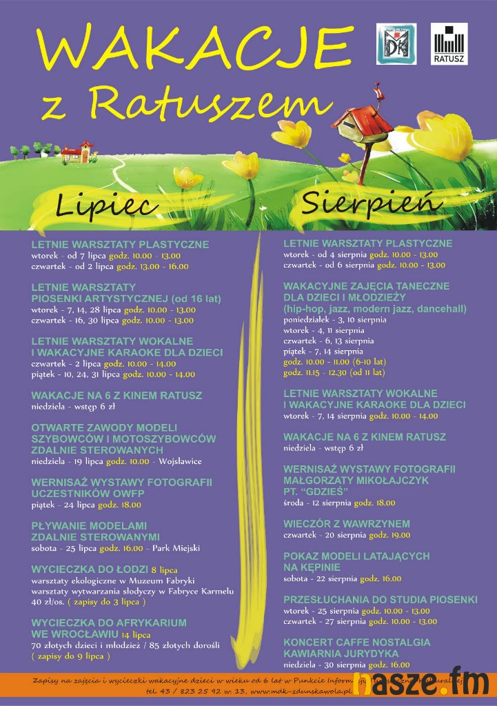Na wakacyjne zajęcia zaprasza Zduńskowolskie Centrum Integracji – Ratusz oraz filia Miejskiego Domu Kultury na osiedlu Karsznice.