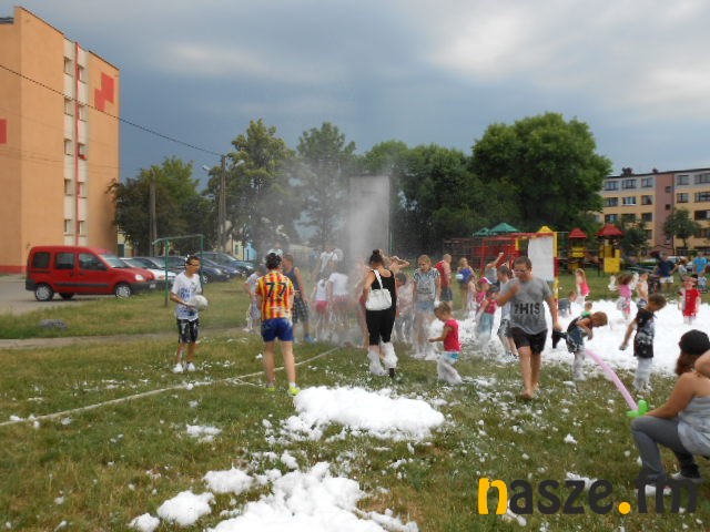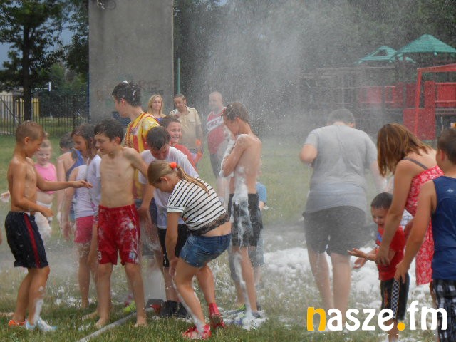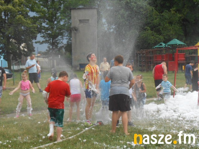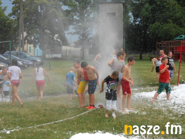 W minioną sobotę, 18 lipca. Były dmuchane zamki, skoki na trampolinie, konkursy z animatorami, zabawy z klaunami. Dzieciaki miały okazję z bliska obejrzeć wyposażenie karetki pogotowia oraz wozu bojowego straży pożarnej. Strażacy przygotowali dla milusińskich nie lada niespodziankę. Była kąpiel w pianie i zimny prysznic ze strażackiego węża. Dodać warto, że w pianie wylądowały piłki do koszykówki i "nogi". Szczęśliwcy, którym udało się je odnaleźć stali się ich właścicielami! Dorośli z kolei w karetce pogotowia ze zduńskowolskiego szpitala mieli okazję zmierzyć sobie ciśnienie. Chętnych, zwłaszcza wśród babć nie brakowało!